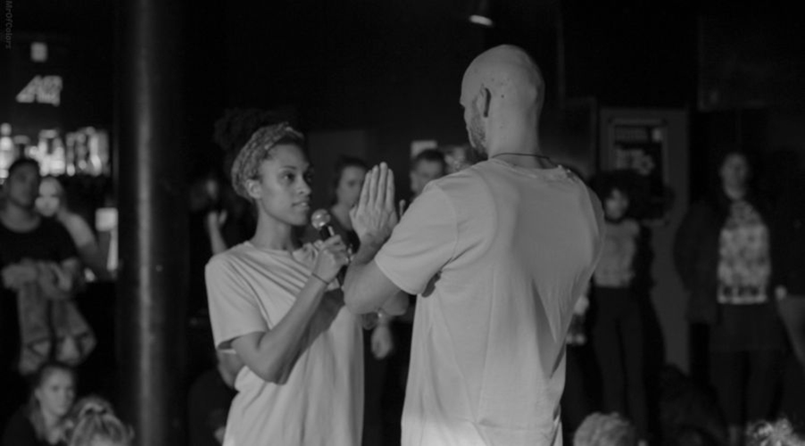 Een groep spoken word artiesten presenteert hun talent aan het publiek. Podium New Attraction spoken word biedt een programma met een grote variatie aan woordkunstenaars, verhalenvertellers, dichters, theatermakers, komedianten en zelfs dansers.